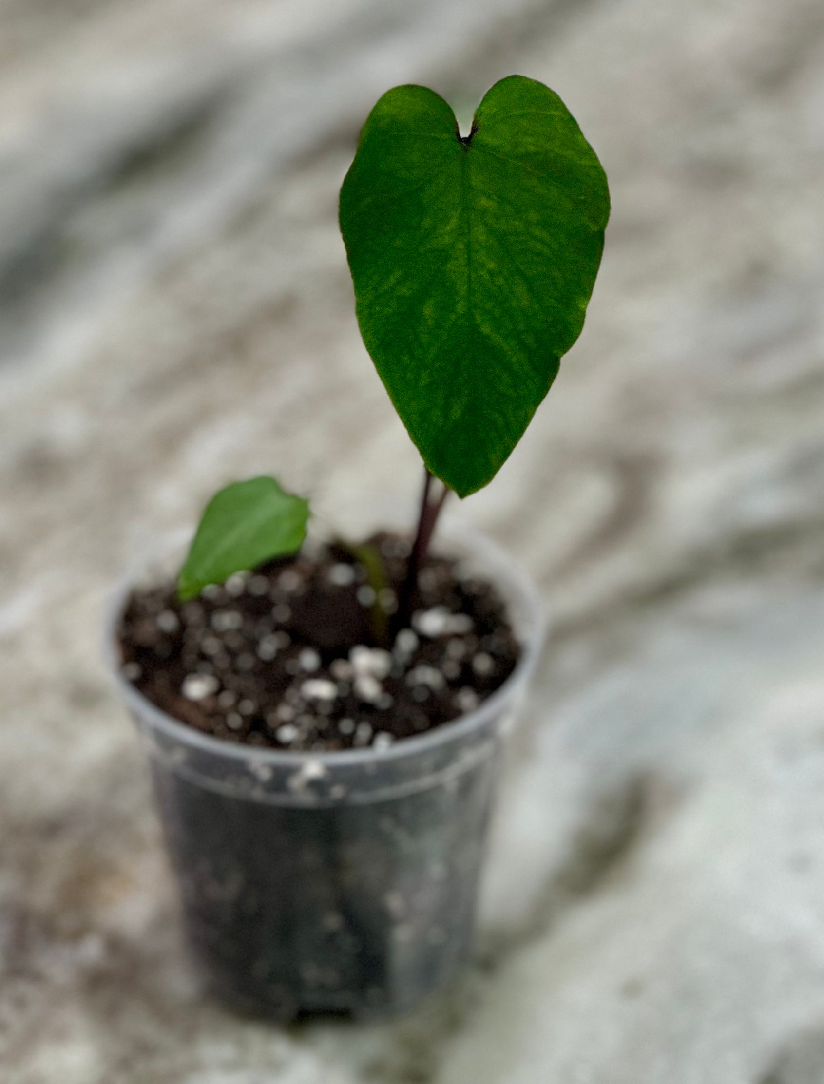 The Pharaoh Mask plant is characterized by its large heart-shaped leaves and intricate, trumpet-shaped flowers. The flowers are the highlight of this plant, featuring a vibrant combination of colors including deep burgundy, cream, and green. The intricate patterns on the flowers resemble the intricate designs seen on ancient Egyptian masks, adding to its allure.